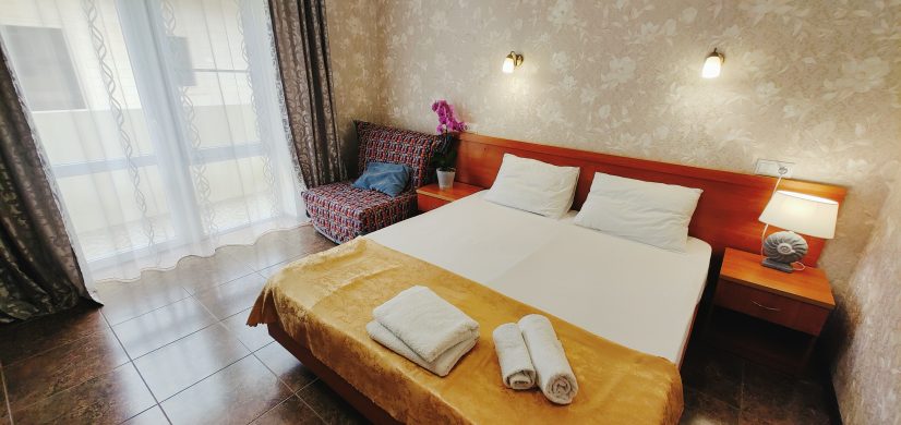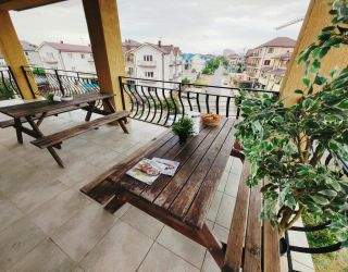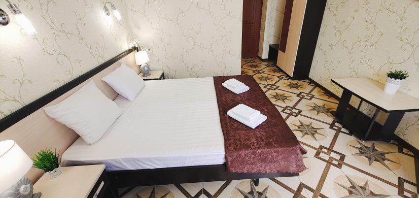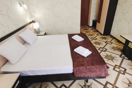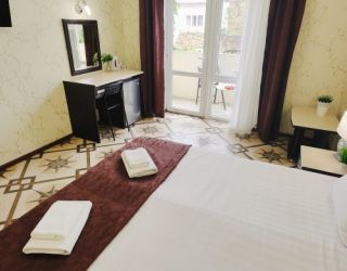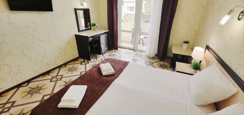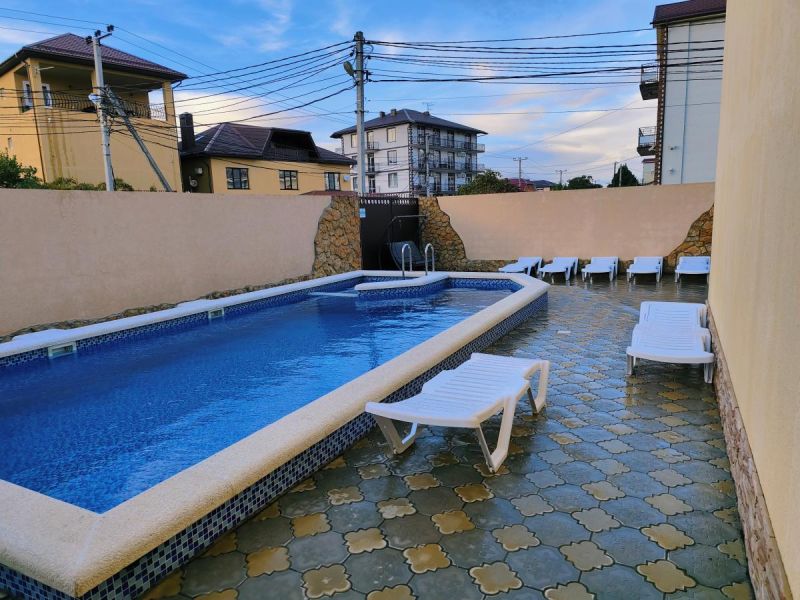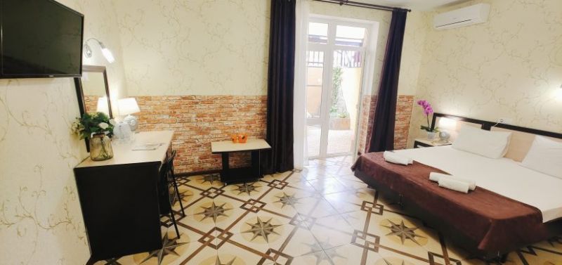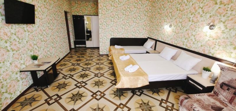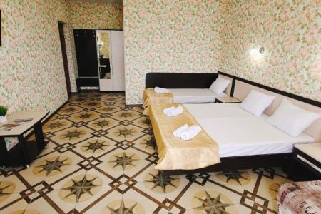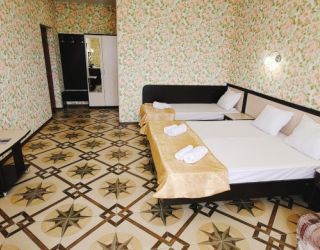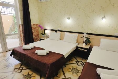 Гостевой дом разместился на закрытой благоустроенной территории. В распоряжении отдыхающих – просторные комфортабельные номера, в том числе и апартаменты с кухней. Во всех номерах есть собственный санузел с душем, в комнатах установлена сплит-система, есть телевизор с плоским экраном и беспроводной интернет.